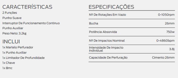 Martelo Perfurador Ford 800W FP7-0007